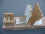 The rear part of the mold: The base of the mold is very solid to avoid deformation, when force is applied. The more precision that goes into making the mold, the more likely you get a good frame. The tubehead and the bottom of the middletube are standing at 90° with the base of the mold. The mold not only indicates the shape of the 3 main-tubes, but also the positions of all important details that needs to be welded onto the frame ( tubehead, V-brake position, derailleur hanger...).